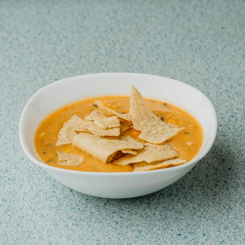 A daily special featuring fresh, homemade soup with a variety of garden vegetables and tender chicken in a savory broth.